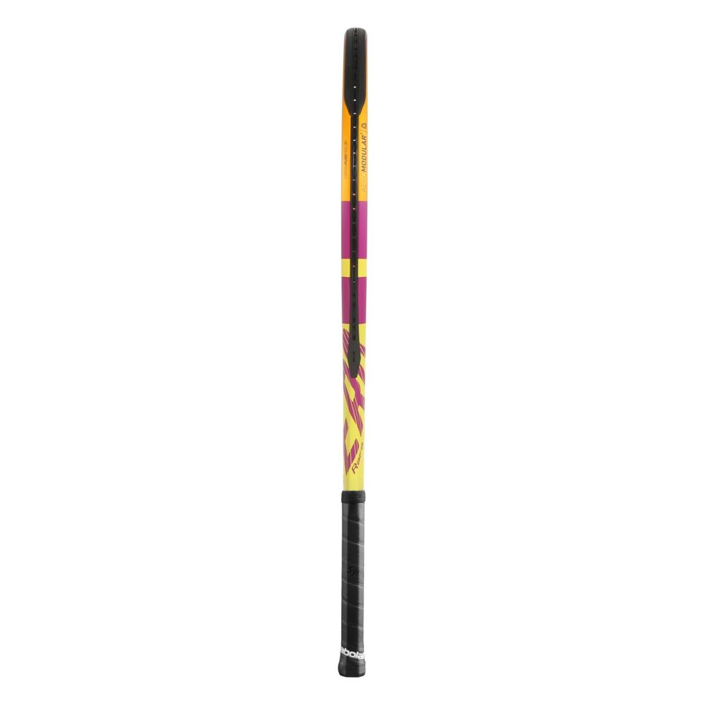 Babolat reket za tenis Pure Aero Rafa 2021 je specijalna verzija odobrena od strane Rafaela Nadala. Ovaj tenis reket je isth karakteristika kao i standardni Pure Aero samo obučen u Nadal kozmetiku. Idealan je za igrače koji koriste spin kao ultimativno oružje za dominaciju na terenu! U suradnji s brojnim igračima diljem svijeta, Babolat je redizajnirao reket kako bi generirao još više kontrole i bolji osjećaj. Nova Carbon Ply Stabilizer tehnologija predstavlja novu generaciju ugljikovih vlakana visokih performansi za povećanu stabilnost reketa i još bolju kontrolu. Aerodinamični okvir tj. takozvana Aeromodular tehnologija omogućuje brže kretanje glave reketa, a time i povećanu brzinu i spin loptice. Cortex Pure Feel osigurava bolju amortizaciju vibracija te povećava udobnost i "zvuk" loptice. FSI Spin tehnologija donosi više otvoren uzorak žice s redefiniranim sweet spot-om i novo gumiranje na donjem i gornjem dijelu reketa koje osigurava veće kretanje žica za generiranje maksimalnog spina. Ovaj reket odgovara izvrsno igračima koji traže moć i optimalni spin, poput Rafaela Nadala i Jo-Wilfried Tsonga!