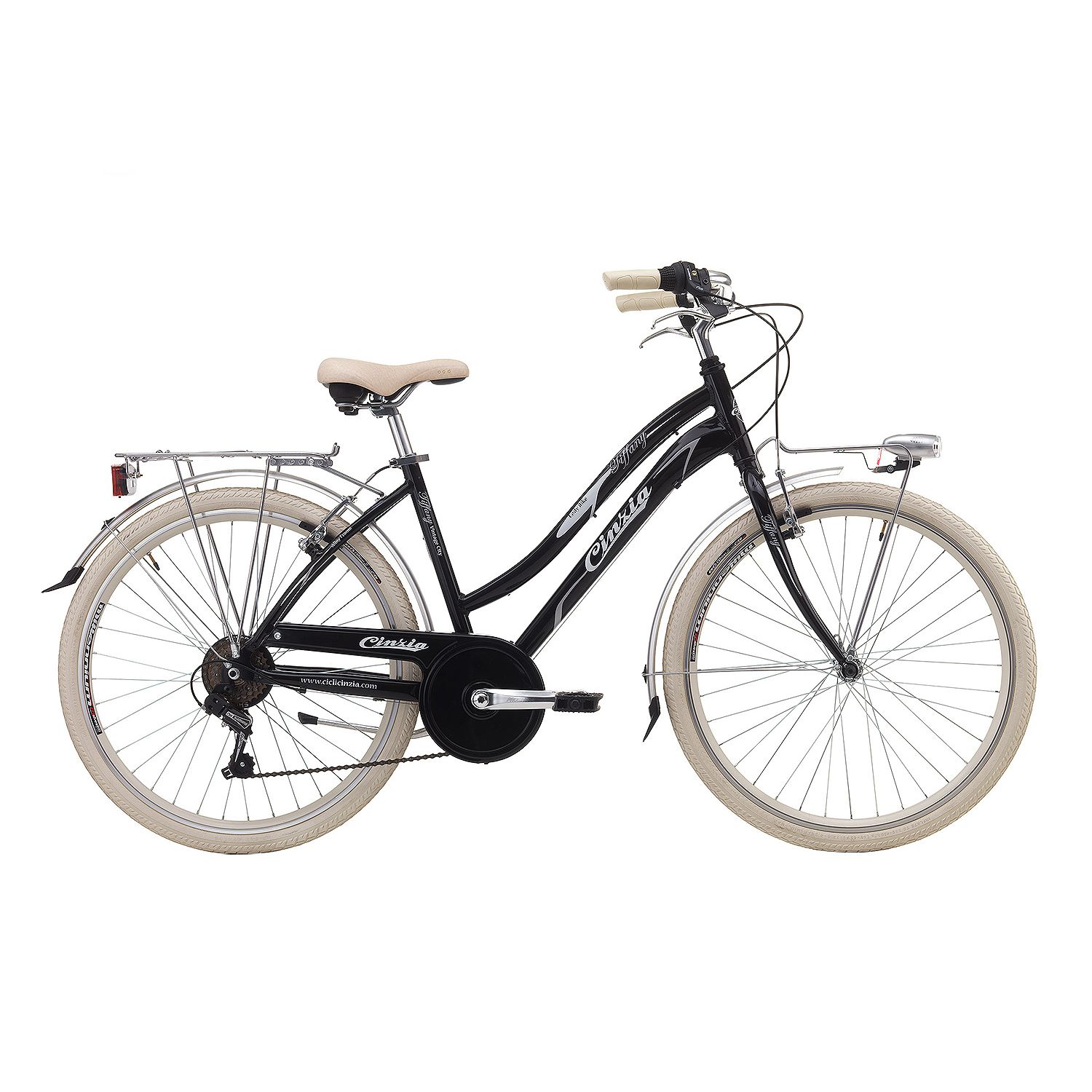 Udobnost, pouzdanost, jednostavnost i kvaliteta. Tiffany gradski ženski bicikl potpuno je opremljen za vožnju gradom. Odlike koje ga čine posebnim su aluminijski okvir, 6 brzina, te je u potpunosti opremljen sa blatobranima, svjetlima, nosačima tereta i nogarom.