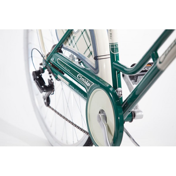 Cinzia Kilt Lady 6B 26'' - Talijanska ljepotica u "škotskom" stilu. Jednostavnost i pouzdanost, udobnost i ekonomičnost za gradske ulice. Bicikl za cijelu obitelj, jednostavan, trajan, opremljen blatobranima, parkirnom nogarom, nosačem tereta. Svakodnevna zamjena za automobil na kraćim relacijama, odlazak u školu ili kupovinu, rekreaciju ili izlete.