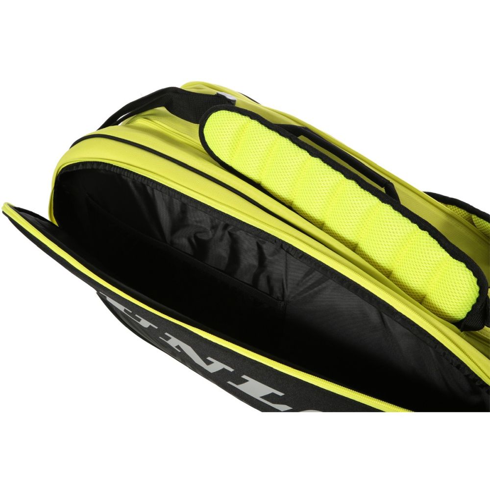 Torba je spremna za nošenje do 8 reketa, a za smještaj sportske opreme i obuće središnji pretinac je posebno dizajniran i prilagođen.