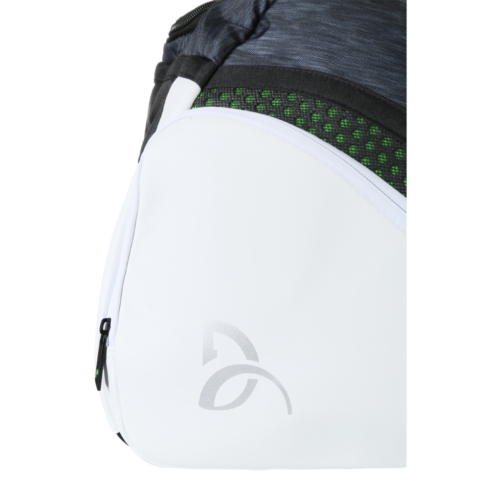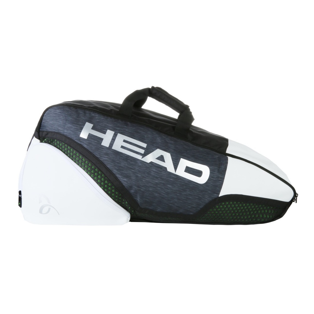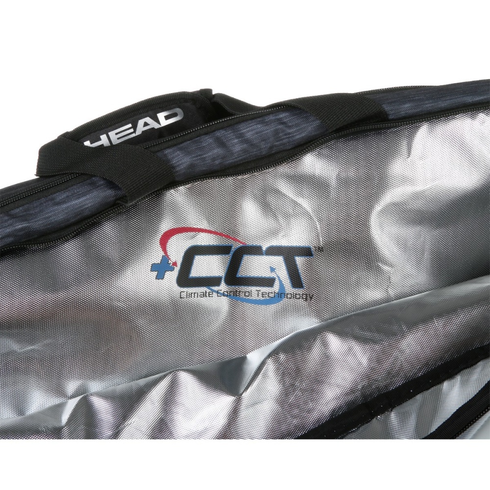 Head Đoković 6R Combi torba za tenis je vrlo praktična torba koja pruža bezbroj mogućnosti i zahtjevnijim igračima i rekreativcima. Ova elegantna top premium torba za tenis kombinira moderan dizajn i veliki prostor za pohranu opreme. Sadrži dva glavna odjeljka, jedan unutarnji te dva vanjska džepa za dodatnu opremu. Izrađena od visokokvalitetnih materijala, torba dolazi s tehnologijom kontrole klime CCT + u jednom od glavnih odjeljaka, koji štiti vašu opremu od ekstremnih temperatura. S istaknutim oblikom zaobljenih rubova i elegantnim crnim dizajnerskim elementima, torba sadrži i potpis i logo Novaka Đokovića.