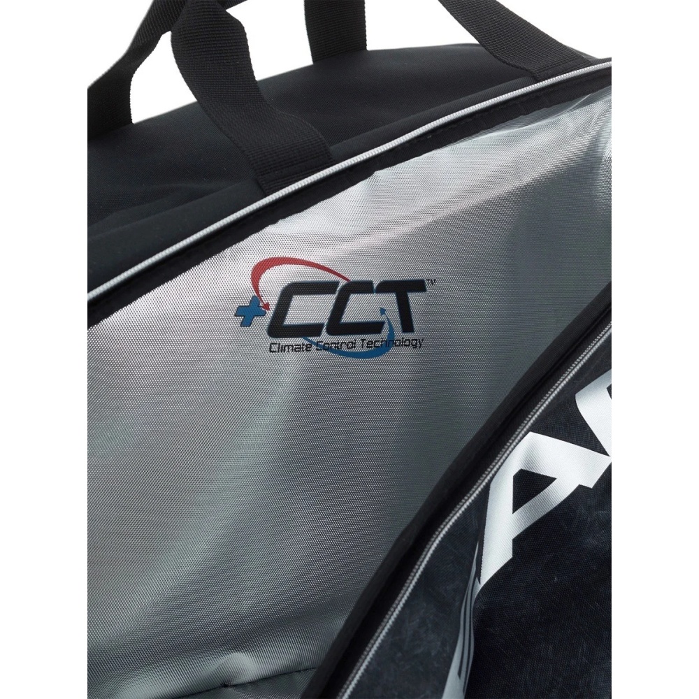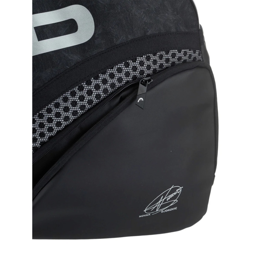 Head Đoković 9R Supercombi 2020 torba za tenis je dio najnovije serije Đoković 2020. Ova elegantna top premium torba za tenis kombinira moderan dizajn i veliki prostor za pohranu opreme. Sadrži dva glavna odjeljka, jedan unutarnji te dva vanjska džepa za dodatnu opremu. Izrađena od visokokvalitetnih materijala, torba dolazi s tehnologijom kontrole klime CCT + u jednom od glavnih odjeljaka, koji štiti vašu opremu od ekstremnih temperatura. S istaknutim oblikom zaobljenih rubova i elegantnim crnim dizajnerskim elementima, torba sadrži i potpis i logo Novaka Đokovića.