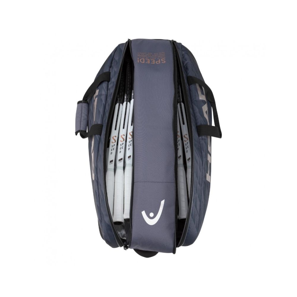 Pokažite da dijelite posvećenost Novaka Đokovića visokom učinku noseći Djoković 9R supercombi torbu za tenis, koja ima elegantan, novi, sivo-crni dizajn koji uključuje njegov potpis i logo, kao i Speed print. Prepoznatljivi oblik sa zaobljenim rubovima pridonosi vrhunskoj privlačnosti torbe koja je namijenjena Đokovićevim obožavateljima, igračima koji odaberu seriju reketa SPEED koju on podržava i svima kojima je stalo do performansi.