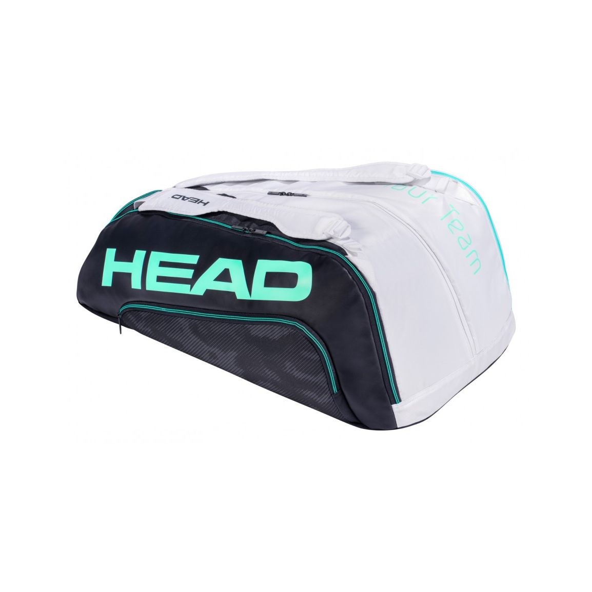 TOUR TEAM 12R MONSTERCOMBI vrlo je funkcionalan partner koji vam pruža svu potrebnu prostranost. Ukupno tri prostrana odjeljka i novi pretinac za cipele pružaju sav potreban prostor, dok unutarnji džep mrežice i vanjski džep daju dodatni prostor za brzi pristup. Novi sustav nošenja omogućuje Vam odabir želite li torbu prebaciti preko ramena ili na leđa za dodatnu fleksibilnost dok ste na putu. A tehnologija kontrole klime CCT + u jednom od glavnih odjeljka čuva vaše rekete zaštićene od čak i najgorih vrućina. Dostupan u novoj asimetričnoj priči u boji i oštar oblik.