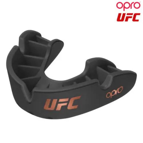 OPRO-UFC štitnik za zube model “BRONZE UFC” pruža najbolju zaštitu razine 2. Vrhunska udobnost koja udobno leži na zubima i desnima što svakom sportašu prilikom bacanja i udaraca daje dodatnu zaštitu. Kavez s jednom kompresijom jednostavan za korištenje i patentirana tehnologija peraja precizno se prilagođavaju zubima i desnima. Zaštitite svoj osmijeh jednoslojnom konstrukcijom iznimno otpornom na udarce. Istaknite se u svojoj izvedbi i budite spremni na sve s UFC brončanim štitnikom za usta.