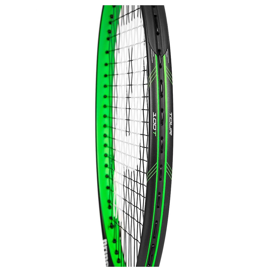 Prince Tour 100T teniski reket dio je najnovije Tour serije reketa razvijene kako bi se osigurala vrhunska kontrola i poboljšani osjećaj za igrače s dugim brzim zamahom. Predstavlja idealnu kombinaciju snage i kontrole te stabilnosti i pokretljivosti! Idealan je za igrače srednje razine koji žele brz i spin-friendly reket s zavidnom kontrolom i snagom. Ovaj upravljivi reket sa svojih 290g omogućiti će agresivnijim igračima lagani pristup spinu. 'Textreme' materijal na području grla i glave reketa poboljšava torzijsku stabilnost, oprašta udarce izvan centra reketa te ujedno osigurava fleksibilnost i kontrolu bez povećanja ukupne težine. Sve u svemu, ovaj reket je odličan izbor za srednju razinu igrača koji žele kontrolu, spin i preciznost u upravljivom paketu!