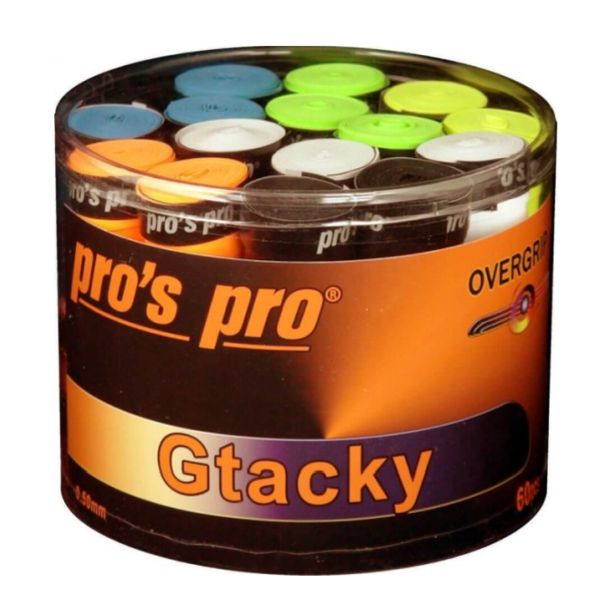 Pro's Pro Gtacky x60 gripovi za teniski reket vrlo dobro apsorbiraju vlagu i daje odlične performanse za povoljnu cijenu. Osigurava udobnost sjajnim sposobnostima prigušivanja vibracija. Dolazi s odvojivom folijom a uključuje završnu traku.