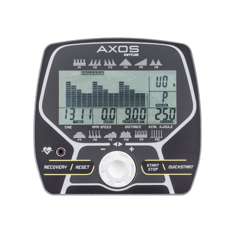 Sobni bicikl Kettler AXOS CYCLE P je model dolazeće sezone. Pogodan je za nezahtjevno vježbanje u vlastitom domu. Sobni bicikl ima magnetski sustav kočenja kojim upravljamo putem računala pritiskom na gumb. Računalo na biciklu će vam prikazati trajanje vježbe, prijeđenu udaljenost, brzinu, potrošnju energije i frekvenciju vrtnje. Sa ručnim senzorom će vam izmjeriti i puls, a optički signal će vam prikazati kada ste se približili gornjoj granici srčanog pulsa. Računalo omogoćava trajni prikaz 7 funkcija, te ima ukupno 12 programa za trening.