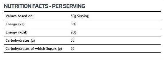 DEXTROSE sadrži 100% čistu D-glukozu odnosno dekstrozu (grožđani šećer). Dekstroza je ugljikohidrat s visokim GI (glikemijski indeks) koji je pogodan za dodavanje u proteinski shake nakon treninga te na taj način pomaže oporavaku i regeneraciji mišića te glikogenskih rezervi unutar mišića.