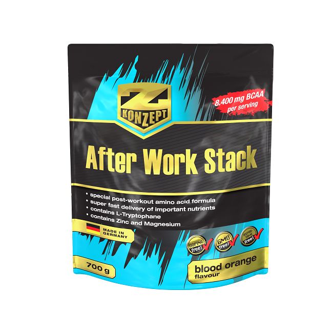 ZKonzept razvio je After Work kako bi jedan proizvod pružio pravu količinu aminokiselina, uglavnom BCAA i glutamin, što je brže moguće odmah nakon treninga.